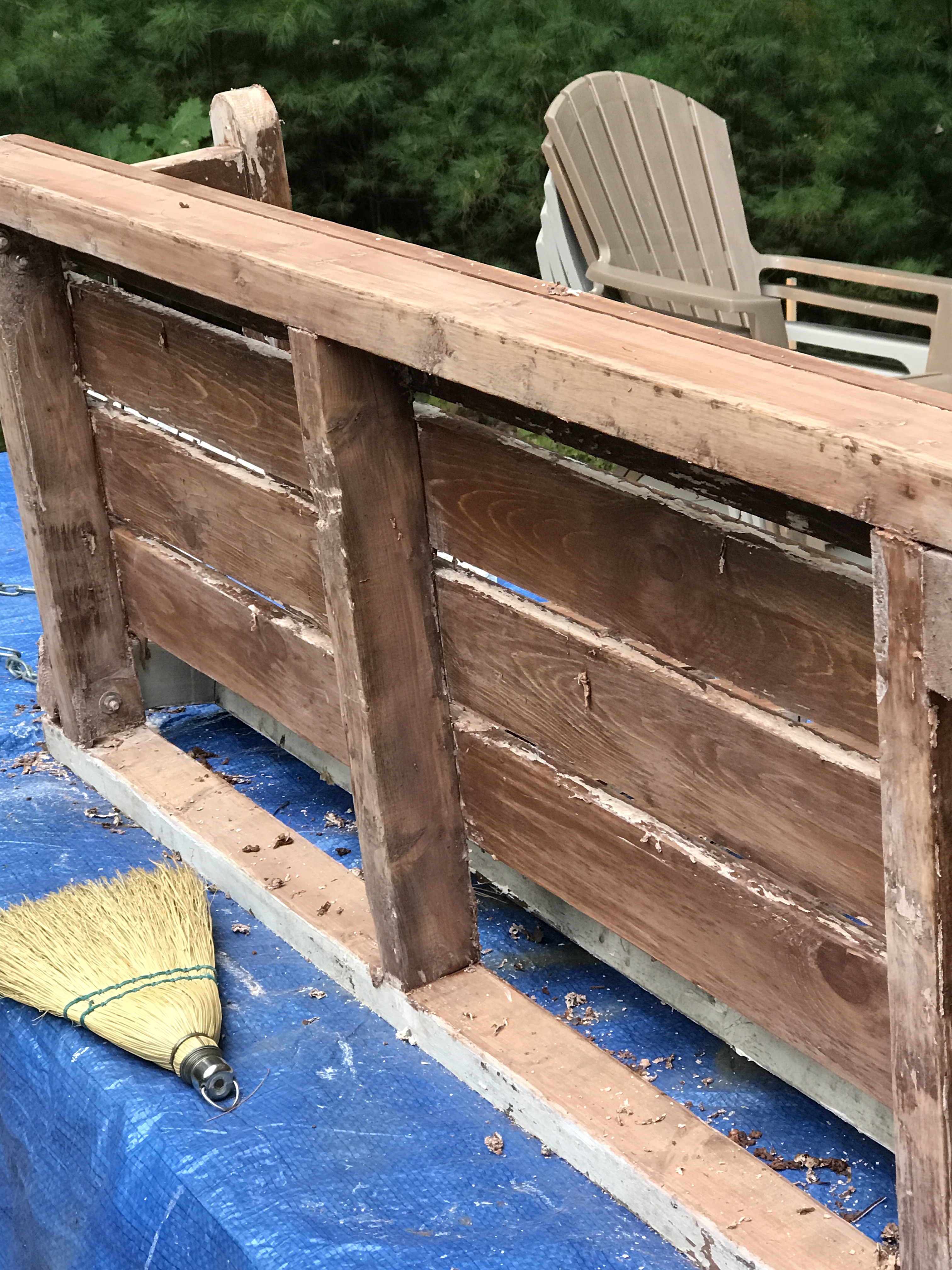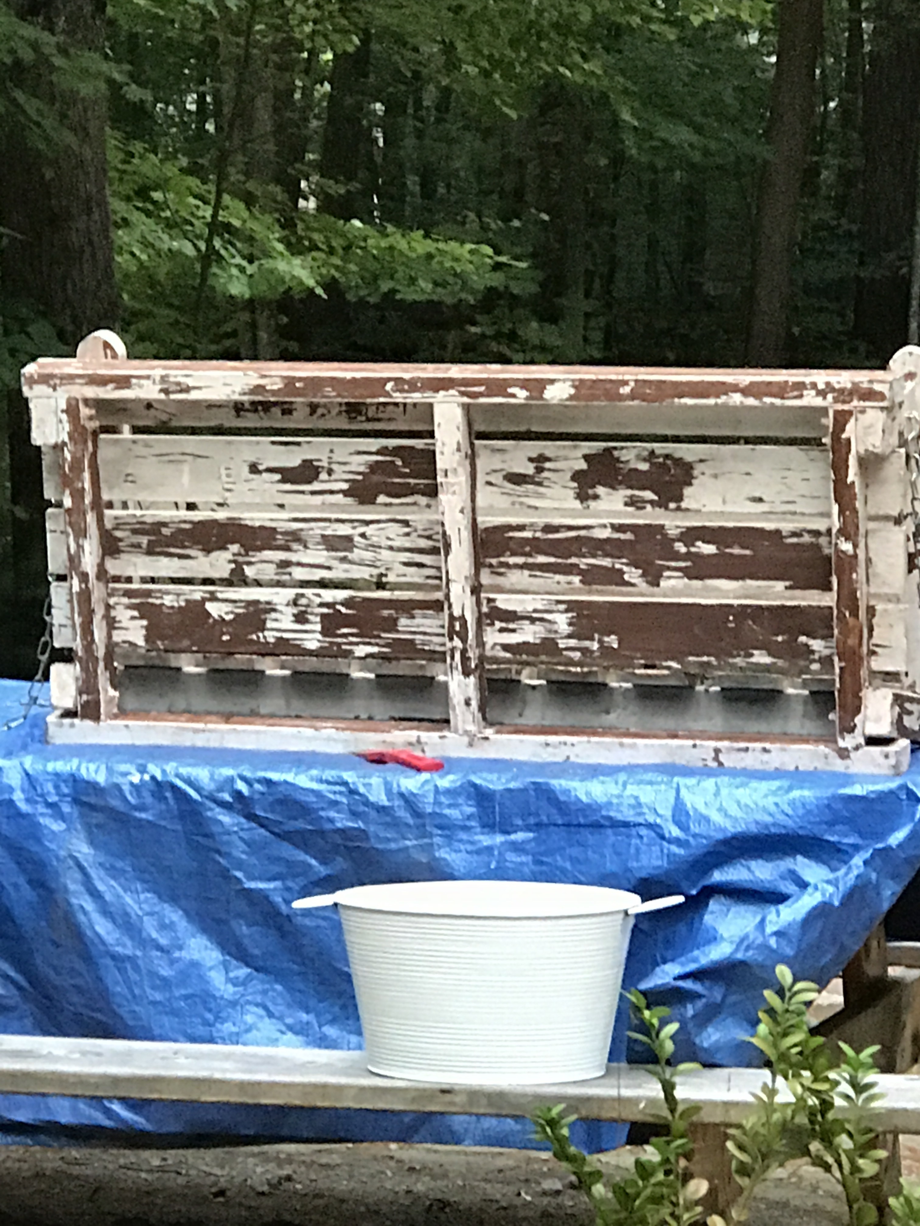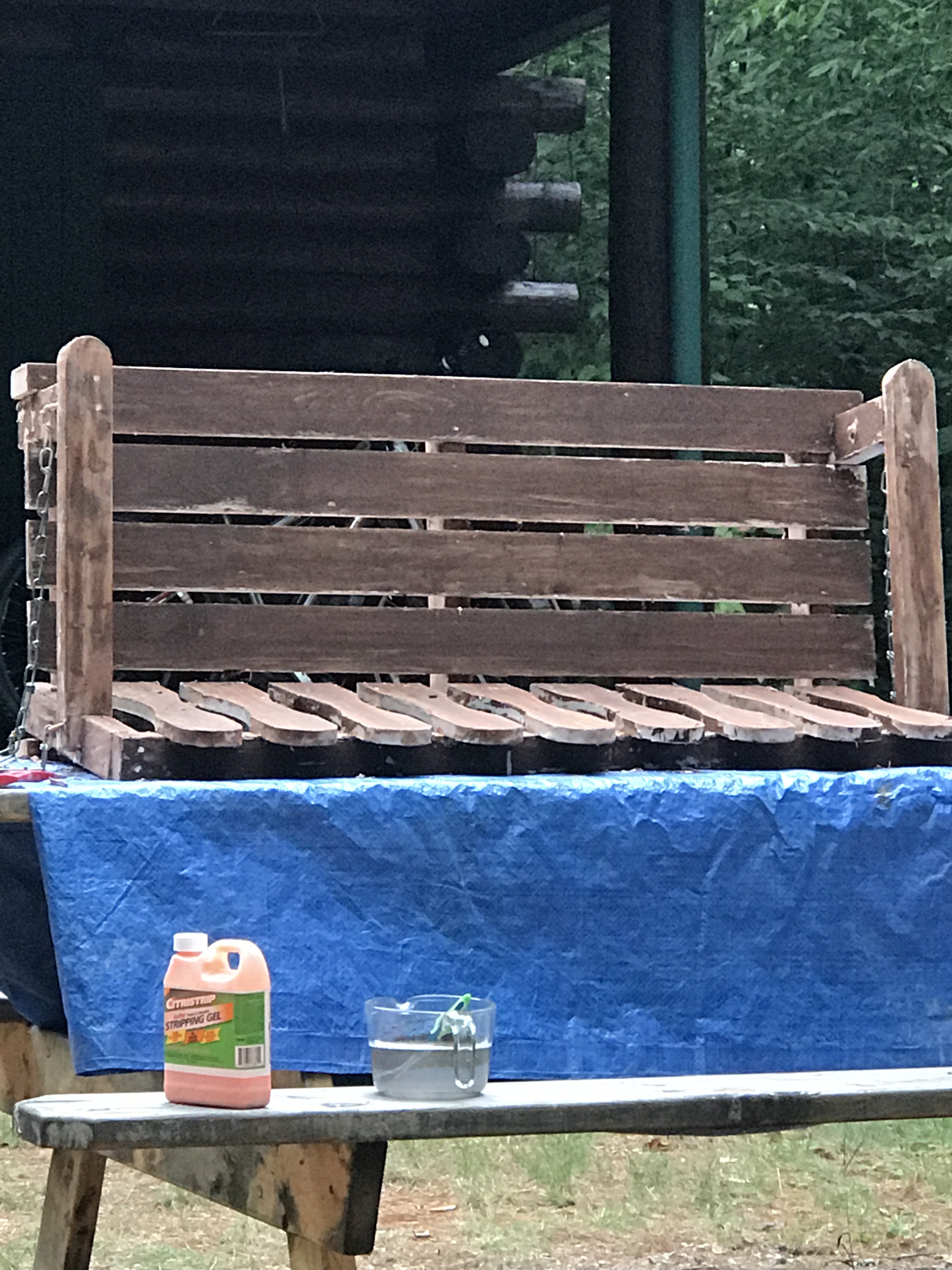 Additionally, I am stripping the old porch swing and I’m going to refinish it with a solid colored stain. As I remove the old chipping, white paint, I am unfortunately discovering another layer of stain or paint beneath. There are many nooks and crannies so this is taking a while!!!!