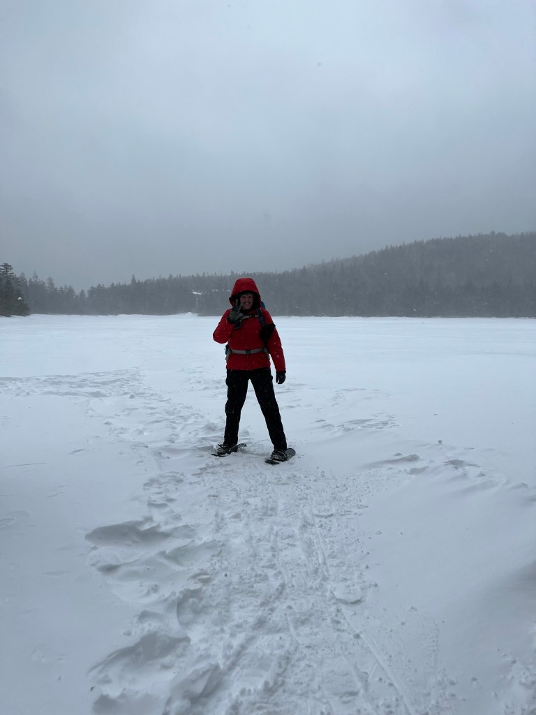 Snowshoes have been a must this winter with the often warm and fluctuating temperatures. Add wind and snow blowing off a lake…..and you have a recipe for deep, drifting snow and some great fun on those snowshoes!